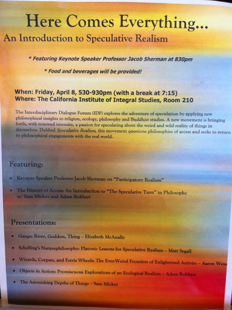 8:30pm – Keynote, “Participatory Realism: Two Cheers for Meillassoux” – Professor Jacob Sherman