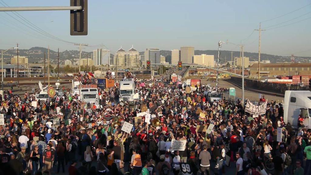 A few classmates from CIIS and I attended Occupy Oakland’s General Strike on Wednesday. I meant to report on my experience earlier (in today’s fast-paced world, news gets old within 2 days), but I was unable to gather my thoughts after the day’s (and evening’s) events unfolded. As an intellectual and an introvert, I am usually a bit anxious whenever I get involved in mass movements: nuanced cosmopolitical critique can quickly become lost in the emotionally incendiary uproar of ten thousand marchers. The General Strike was a success overall, but the message of peaceful protest sent around the country and the world would have been that much clearer if it were not clouded by the violence and vandalism of a few asocial anarchists.