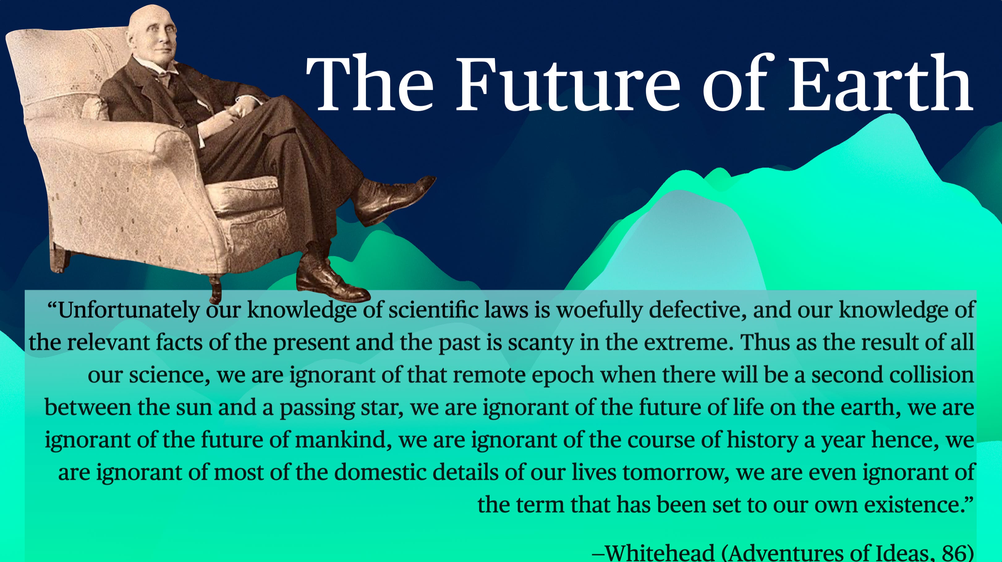 From a strictly mechanistic or geophysical standpoint, life on Earth may be doomed in a few hundred million—or at best a few billion—years, due to the sun’s increasing heat and geological changes. Scientists suggest that Earth will eventually become inhospitable, culminating in a runaway greenhouse effect. Yet Whitehead pointed out that our scientific laws and knowledge of relevant conditions are “woefully defective” with regard to predicting far-future events. We do not know when (or if) distant cosmic collisions might take place, how history might unfold, or even many of the “domestic details” of our personal lives tomorrow.