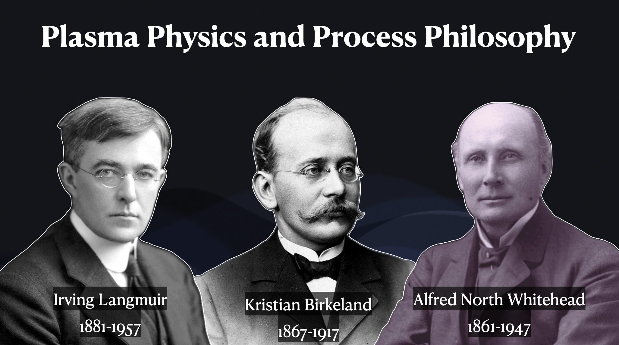 Let me turn now to a few thinkers in addition to Whitehead: Irving Langmuir and Kristian Birkeland. Langmuir coined the term “plasma” in 1928, trying to distinguish it from mere ionized gas, and he wanted to evoke its organismic qualities. Plasma for him was connected to the life-bearing fluid of our blood; the plasma currents flowing through the solar system and the galaxy were akin to the circulation of our blood. Plasma, rather than being a passive background, is more like a responsive field that exhibits behaviors more akin to living tissue than to dead particles.