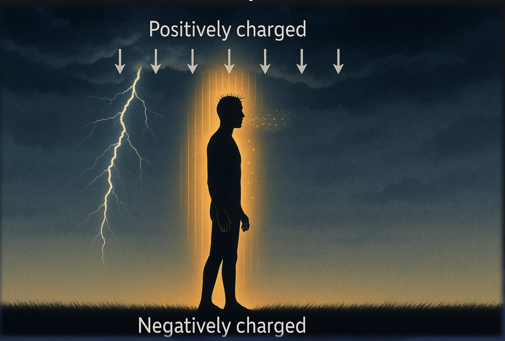 Our upright posture, so often thought to distinguish our species from other animals, places us in a unique electromagnetic relationship with the planet and the sun. This vertical stance maximizes our exposure to the atmospheric voltage gradient and makes us, in effect, biological batteries—plugged in between the negatively charged Earth and the positively charged upper atmosphere. Every step we take slightly disturbs this field; every breath we exhale releases ions that modify the local electrical environment.