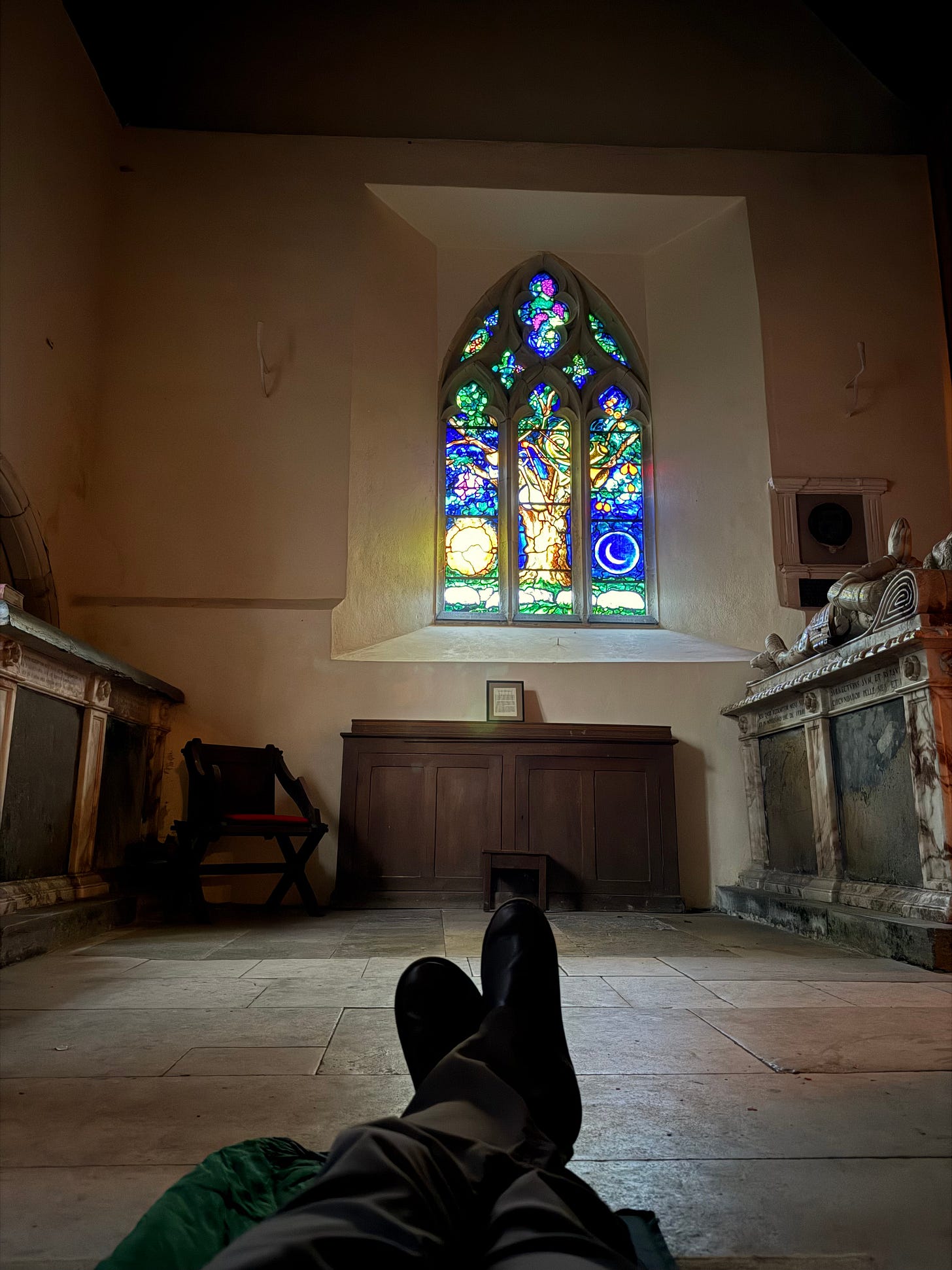 I slept in St. Peter’s that night. The vicar Peter Owen Jones delivered the following sermon for us. He began with a reading of John 20:1-18: